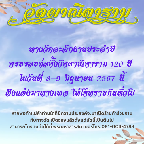 ครบรอบก่อตั้งวัดผาณิตาราม 120 ปี
